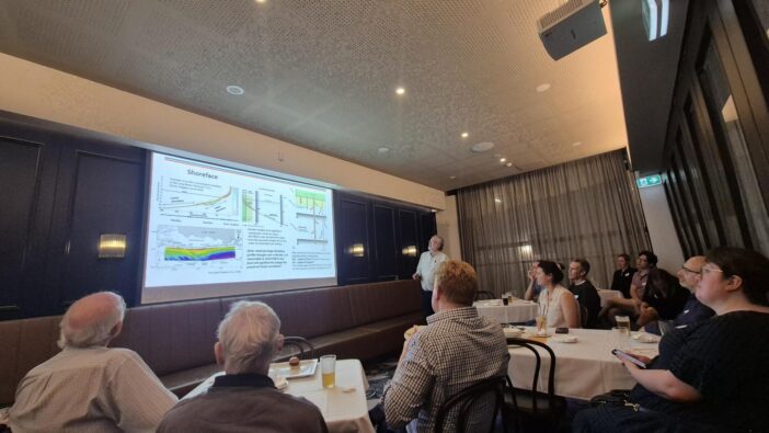 Dr Willis is a recognised expert on fluvial systems, with more than four decades spent studying the sedimentology and stratigraphic organisation of these depositional systems. This time, his focus was on the terminal end of the system with three-dimensional architecture of wave-dominated delta deposits the topic of the presentation.